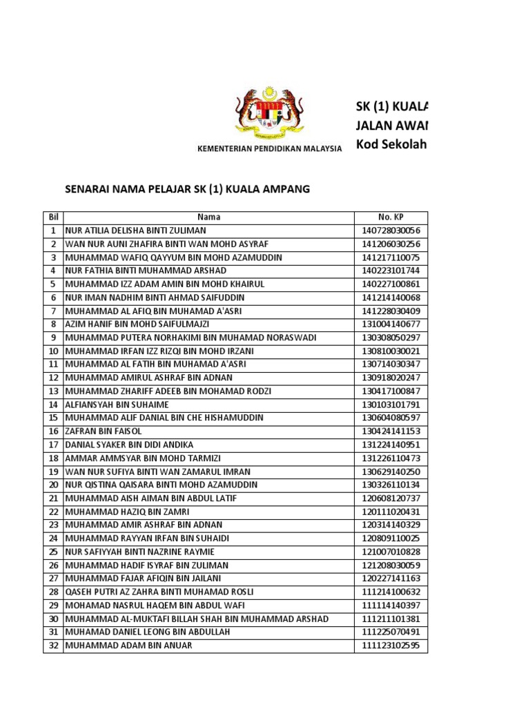 Senarai Nama Pelajar Sk 1 Kuala Ampang 1 Pdf Cultural Geography Asia